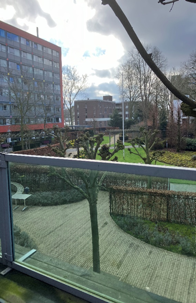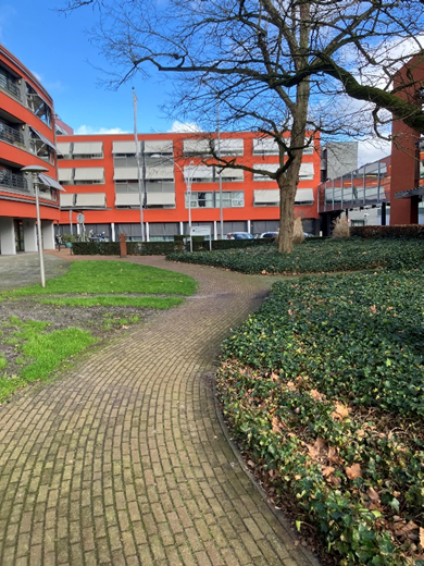 Het Maxima Medisch Centrum rijst - haar ruimte claimend - voor de wijk uit. Woonzorgcentrum Peppelrode van de Vitaliszorggroep ligt erachter. We herinneren ons Peppelrode nog goed, ook al is het 10 jaar geleden dat de dames THe daar een zorgvisite aflegden. We waren over Peppelrode zelf indertijd goed te spreken. En nog steeds is deze kwaliteit binnenshuis aan alle kanten aanwezig. Dat doet ons plezier. Ook de enorme tuin met mooi aangelegd groen, wandelpaden en een theehuis is nog steeds aangenaam.