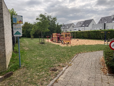 De buurt ervaren wij nu nog als een lappendeken van oudbouw en nieuwbouw, afgewisseld met de zo typerende Belgische straten en nieuwbouw woningclusters, met incidenteel aandacht voor belevingsvol groen, voor de toegevoegde waarde van een betekenisvolle openbare ruimte en voor speelplaatsen. We realiseren ons wel dat we hier nu in vakantietijd lopen, want we zien wel schoolgebouwen en dan zullen de jongeren wel voor reuring zorgen.