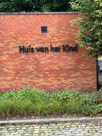 Wat dan wel weer opvalt is dat juist de ruimte waarvan we denken dat die als ontmoetingsruimte voor mensen in een kwetsbare positie is bedoeld, leeg staat en ook eigenlijk ontoegankelijk van buiten is voor de buurtbewoners. Terwijl deze ruimte, ook pal aan de bosrand zo aardig als buurthuiskamer of Michi Noeki (Zie de link bij Turnhout Oost hierboven) zou kunnen functioneren. TIP Wat ook nog kan is bewegwijzering en ommetjes uitzetten alsook her en der nog iets als een mininbieb of iets dergelijks. TIP En nog wat meer vrolijkheid a la het figuurtje dat we zagen op het Huis van het Kind (een veel betere naam voor een creche! TIP) kan nooit kwaad.