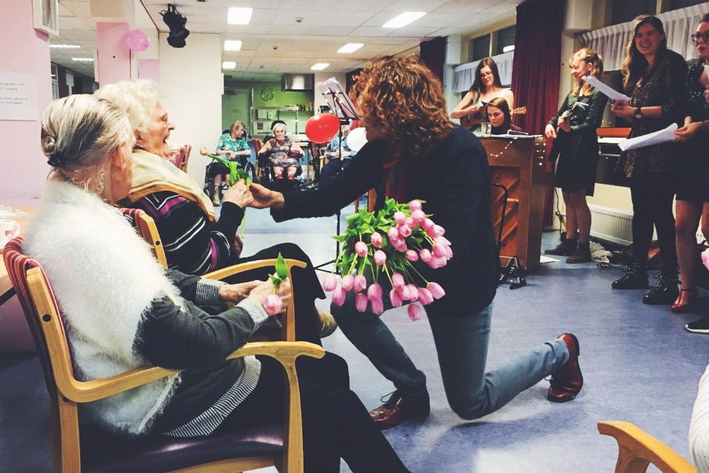 Met de invoering van het nieuwe leenstelsel voor studenten (2015), onder wie haar eigen kinderen, kwamen er voor Gitta diverse aspecten bij elkaar. Hoe kom je aan geschikte woonruimte en hoe start je met een studieschuld van vele tienduizenden euro’s je werkzame leven? Ondertussen sloten talloze woonzorgcentra van overheidswege hun deuren en zag Gitta potentie in de ontstane leegstand. Zouden jongeren niet ‘hun handjes kunnen laten wapperen’ en tegelijkertijd het welzijn van bewoners verhogen en de zorg ontlasten? Gitta: “Dat verbindt generaties, versterkt netwerken en biedt een leerzame woonomgeving. En het vergroot ook het welzijn van de jongeren zelf, want het geeft voldoening als je iets voor een ander mag doen en daardoor de eenzaamheid vermindert.”