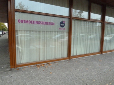 Wij krijgen er geen warm gevoel bij. Bij ons -Amsterdamse dames- doemt de associatie met IJburg op; ons ‘Haagse oortje’ Ada vindt het een omgeving waar bijna alle woonzorgcentra van WZH patent op hebben. Woonzorgcentrum Hoge Veld zit in een gelijksoortig gebouw, keurig anoniem in de gevellijn. De naam staat in winkelcentrum letters op het gebouw. FOTO In het vier, vijf verdiepingen hoge gebouw zijn zgn. garantwoningen voor zelfstandig wonende ouderen die gemak diensten en zorg binnen handbereik willen hebben en 10 groepswoningen voor 6 tot 7 mensen met dementie. Van de garantwoningen staat de plattegrond op de website, van de groepswoningen dementie niet. Dat kan verbeterd. ZORGVISITE TIP