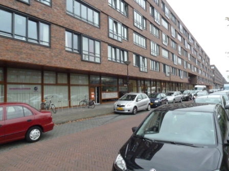 Langs het gebouw lopend zie je op de begane grond ramen als een grote etalage van stoep tot plafond. Geen raam ervan kan open, laat staan dat er een deur in zit om iets van een verbinding naar buiten te maken. Daar schort het overigens in het hele gebouw aan de straatkant aan. Het lijkt wel alsof de architect zijn best heeft gedaan om mensen vooral niet naar buiten te laten kijken/gaan, zeker op de etages. Oh oh, wat zijn er toch veel architectonische fouten gemaakt waardoor juist de kwetsbare mensen van zoveel verstoten worden.