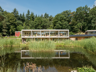 Zwembad Beekhuizen is gelegen op voormalig landgoed Beekhuizen en ligt aan de rand van Nationaal Park Veluwezoom. Het oude zwembadcomplex is getransformeerd en sinds 2015 zorgt een bewonerscollectief in zes duurzame sociale huurwoningen voor bijna 2,5 hectare prachtige natuur. Je kunt er ringslangen, ijsvogels en vleermuizen tegenkomen (foto: Bernard Smits).