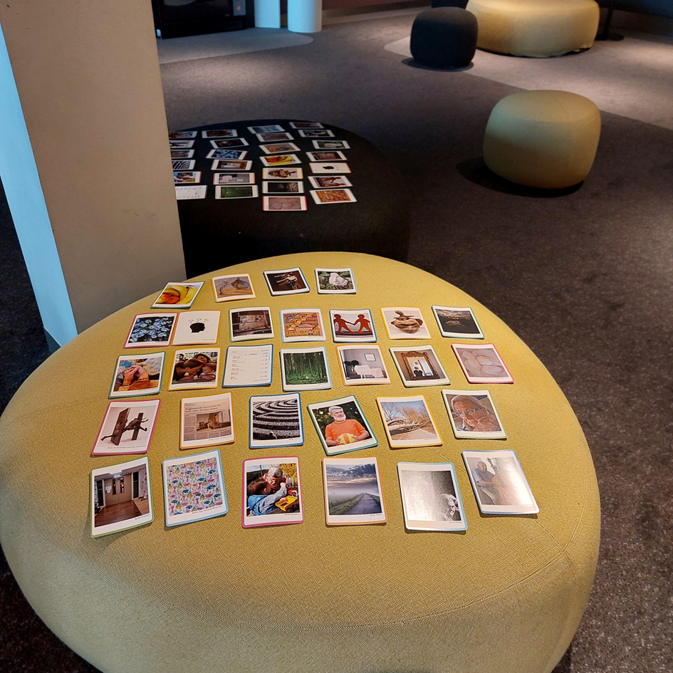 Voorafgaand aan de film kiezen bezoekers uit een reeks kaarten welke foto volgens hen het best hun persoonlijke indruk van leven met dementie verbeeldt. Deze foto’s zijn het resultaat van een publieksuitvraag door de onderzoekers van het lectoraat Goed Leven met Dementie van hogeschool Windesheim naar de positieve en negatieve beelden die mensen van dementie hebben en wat daarachter zit. In de filmzaal vergelijken mensen die naast elkaar zitten aan de hand van een gekozen kaart hun beelden van dementie. Simone en Franka leggen uit dat ze op basis van onder andere deze foto’s en allerlei gesprekken met burgers, mantelzorgers, mensen met dementie en zorg- en welzijnsprofessionals werken aan een VR-film. Met deze film willen zij de beeldvorming over dementie bij mensen en zorgverleners nuanceren, en hen bewustmaken van de rol die zij hebben in het ondersteunen van goed leven met dementie.