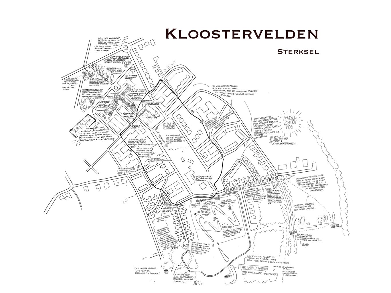De ‘Woondroom Kloostervelden’, een inclusieve woonwijk in het Brabantse Sterksel, is volledig uitgekomen: Niet mensen met zorg ‘onder de mensen’ brengen in een woonwijk, maar nieuwe buren brengen naar mensen met zorg en samen een actieve woonwijk vormen. Ruim 170 mensen met woonzorg (leuners) wonen hier nu volledig geïntegreerd met zo’n 500 bewuste buren (steuners) in de nieuwe wijk Kloostervelden. Een wijk die barst van natuur, kunst en cultuur. Een levendige en veilige wijk ook, voor álle bewoners, van jong tot oud.