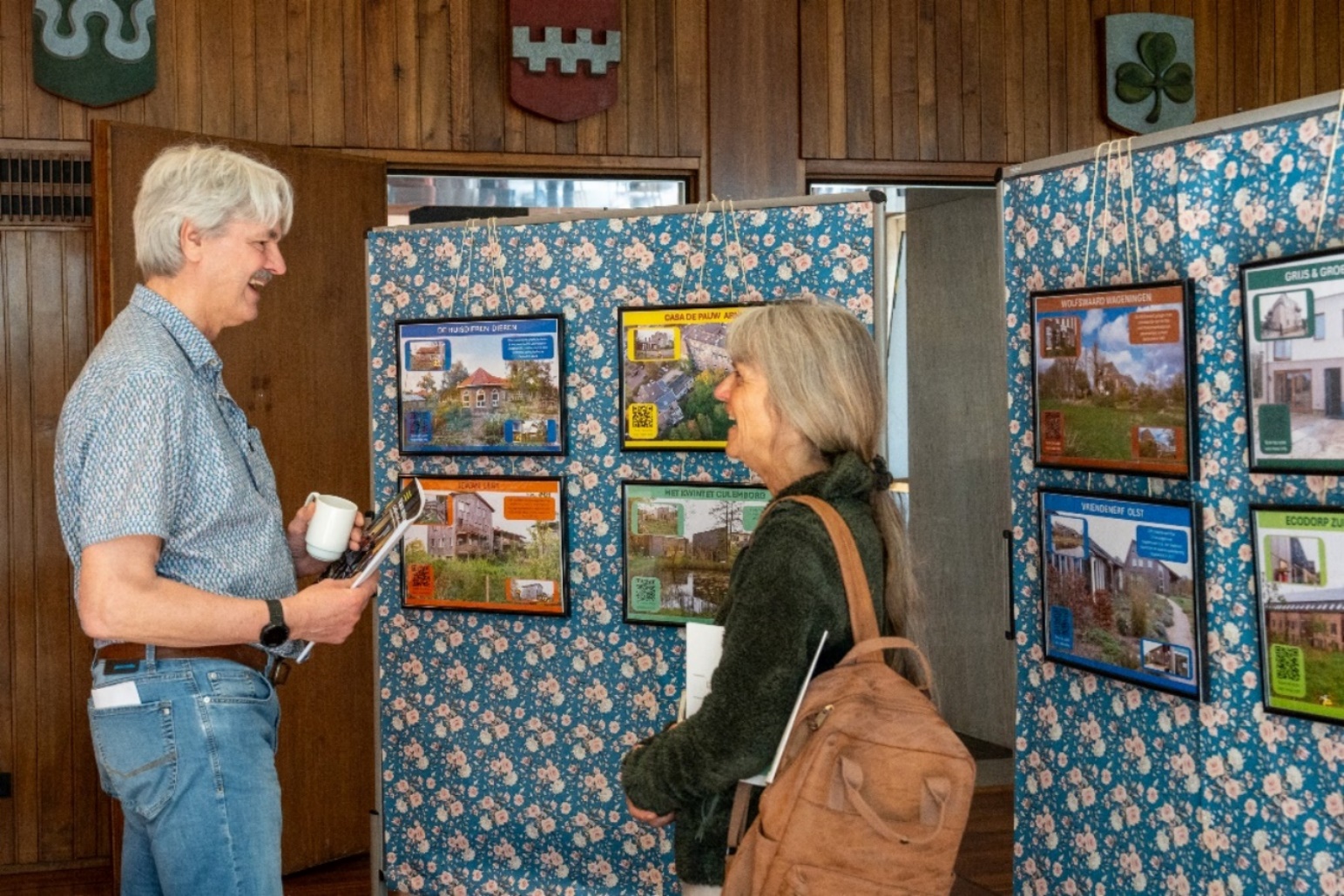 Bezoekers met elkaar in gesprek bij een fotopresentatie