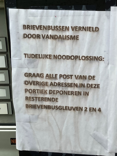 We komen al snel in de zgn. Edelstenenbuurt. Typisch een jaren ‘80 bouw. We hebben het meteen door, een wegstop buurt voor de sociaal zwakkeren. We lopen direct tegen een paar papieren aan, geplakt op brievenbussen. Er kan geen post bezorgd worden want de brievenbussen zijn vernield door vandalisme.