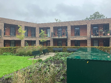 Naast Hof Mondriaan treffen we naar onze verrassing het appartementengebouw De Binnenhof van Woonzorg Nederland als een eend in de nu nog vreemde Dauwendaelese bijt. Goed voorbeeld doet volgen denken we maar, ook al zien we kleine verbeter mogelijkheden om in de nu wat statische semi-publieke buitenruimte, de natuurlijke ontmoeting en gemeenschapszin te vergroten.