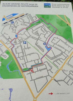 We komen bij het winkelcentrum Dauwendaele via een wirwar van poortjes en achterommetjes. We ervaren ze tijdens onze wandeling door Dauwendaele als onoverzichtelijk, onveilig en naargeestig, maar als je door je oogharen heen kijkt kunnen ze van enorme meerwaarde zijn als je er een visie op ontwikkelt, er kwaliteit aan toevoegt via groen, kleine kunst als streetart, poëzie, een beeldje, tegelwerk, minibiebjes. Je hebt er zo een prachtige wandelroute bij! TIP