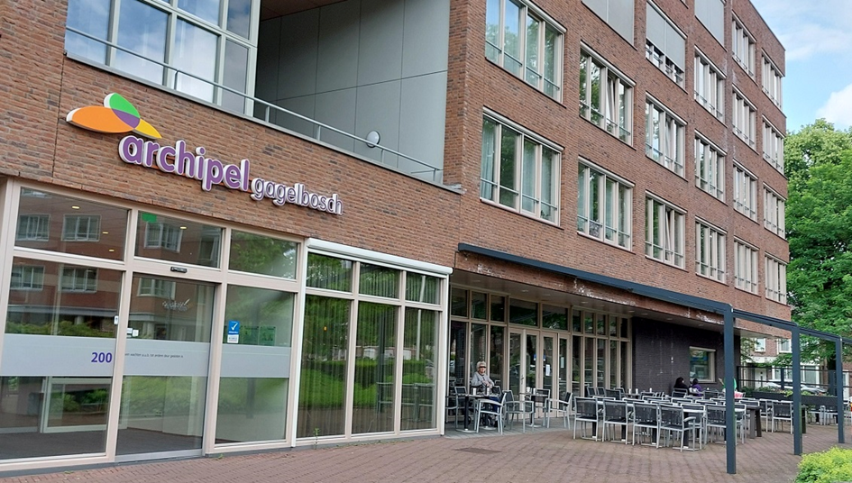 Zorgcentrum Gagelbosch, aan het Zuiderpark, heet mensen welkom op een groot terras